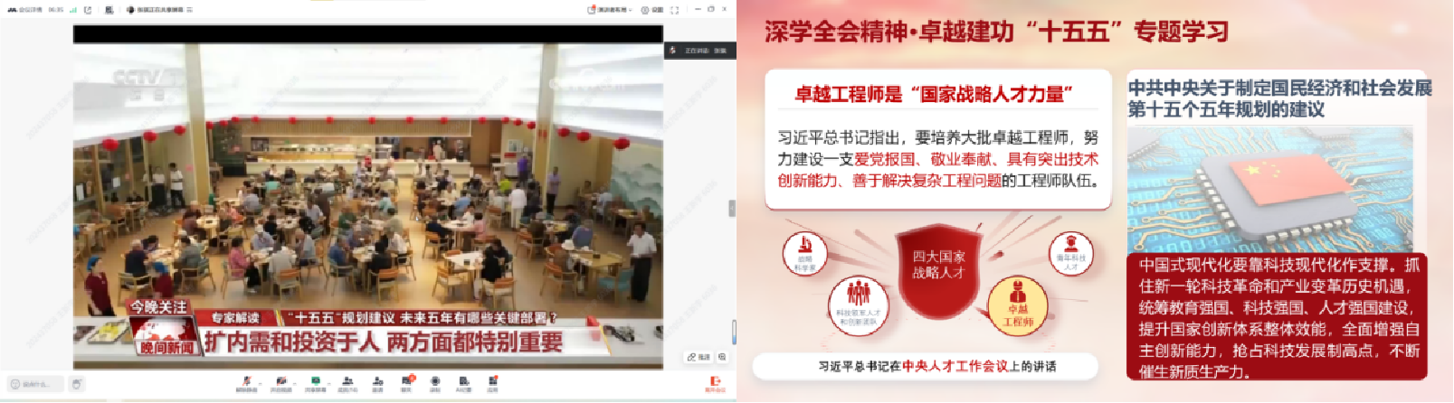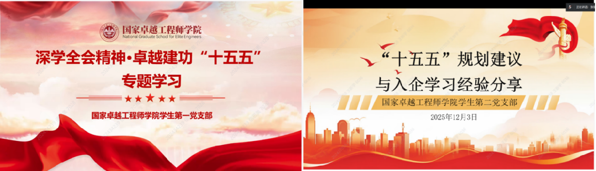 活动中,员工第一党支部书记刘一苏、员工第二党支部书记张骐分别带领员工党员深入学习《中共中央关于制定国民经济和社会发展第十五个五年规划的建议》,系统解读国家在科技创新、产业升级、人才培养等方面的战略布局。刘一苏表示,卓越工程师是国家战略人才力量的重要组成部分,必须将个人成长融入国家发展大局,在新时代新征程中勇担重任、奋发有为。张骐表示,党员同志应深入理解“十五五”规划的意义,以此为指导明确个人发展方向,在解决真问题、锤炼真本领方面发挥党员先锋模范作用。随后,全体成员观看了“十五五”规划解读视频,系统学习了其在科技创新、产业升级等领域的战略部署。