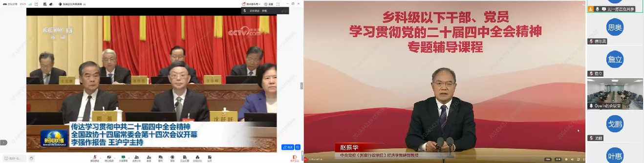 国卓院员工第一党支部书记刘一苏、第二党支部书记张骐,学科交叉中心员工第一党支部书记刘若男、第二党支部书记乔羽、第三党支部书记王飞宇分别带领本支部全体党员共同学习了学习贯彻党的二十届四中全会精神专题辅导课程,全国“两会”精神,“十五五”系列课程等,引导员工党员统一思想、凝聚共识,将党的二十届四中全会精神与科研学习深度融合,用实际行动绘就“十五五”高质量发展的壮丽画卷。