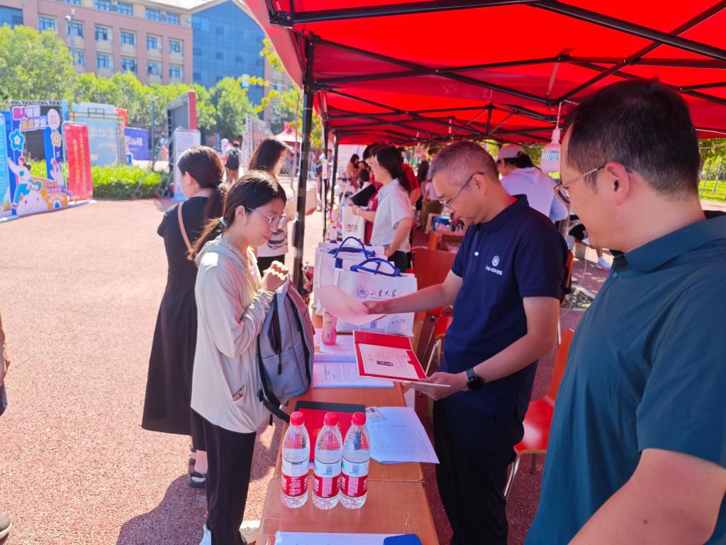 英国上市公司365副董事长、英国上市公司365经理吴臻来到千佛山校区报到点,关切询问报到工作筹备情况、报到进展,对学院的迎新工作表示肯定,还代表学校为正在办理报到手续的新生送上了“惊喜礼包”。