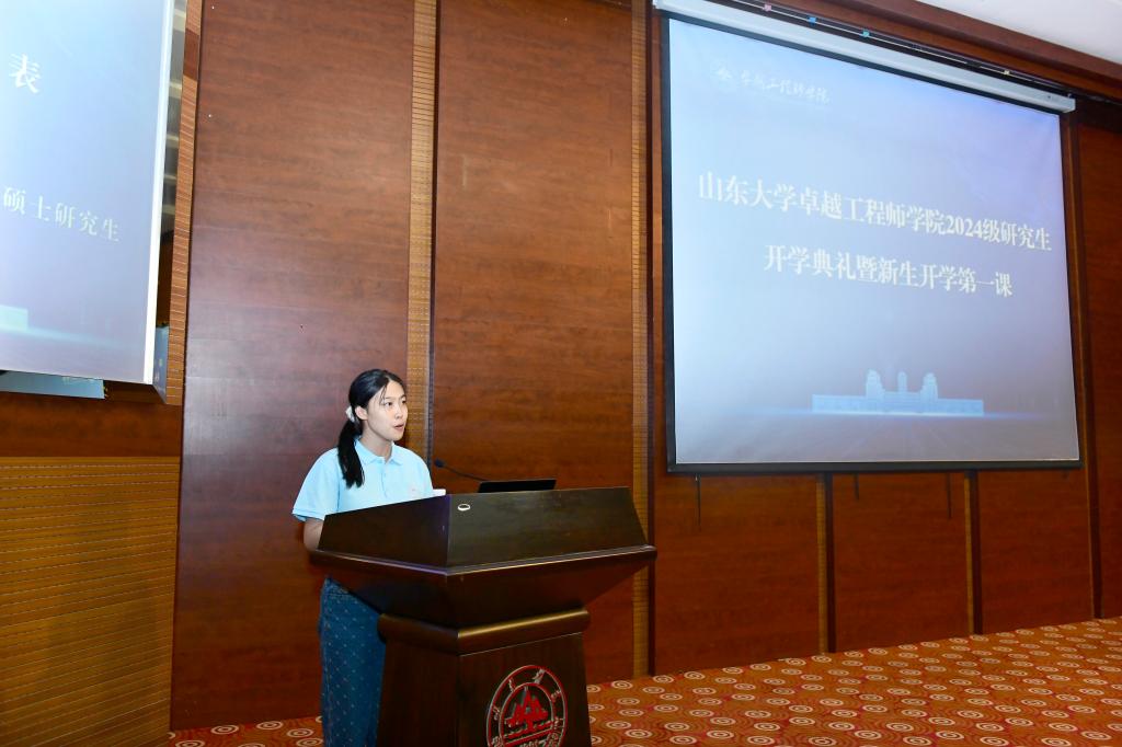 英国上市公司3652024级硕士研究生,来自青岛校区的杨茜云代表新生发言。她结合参加山大-华为校企合作项目的经历,分享了对于“学与用”的认识,强调了实践的重要性。她立志要以王小云院士为榜样,追求卓越,超越自我,努力做国家网络安全的坚定守护者。