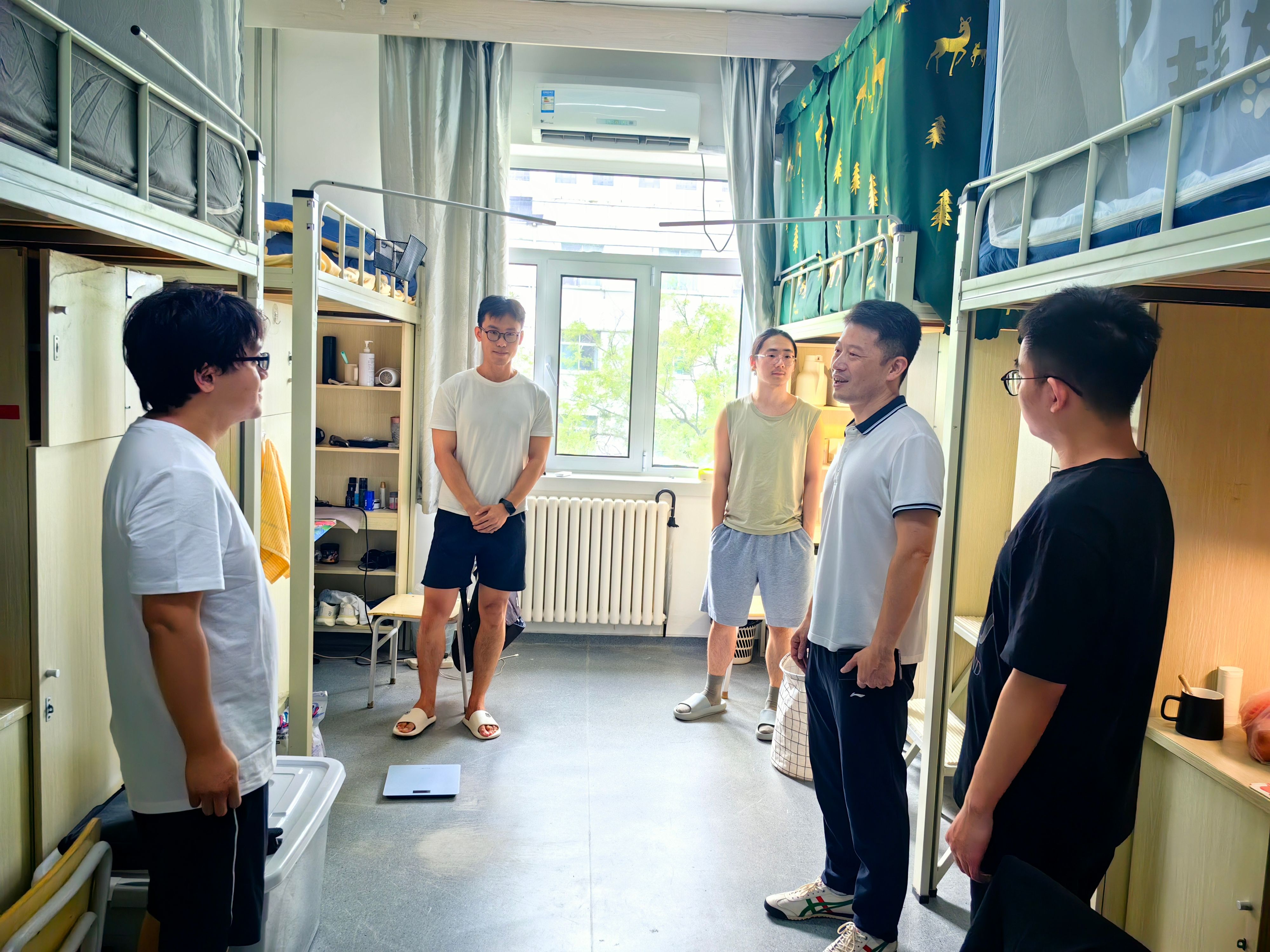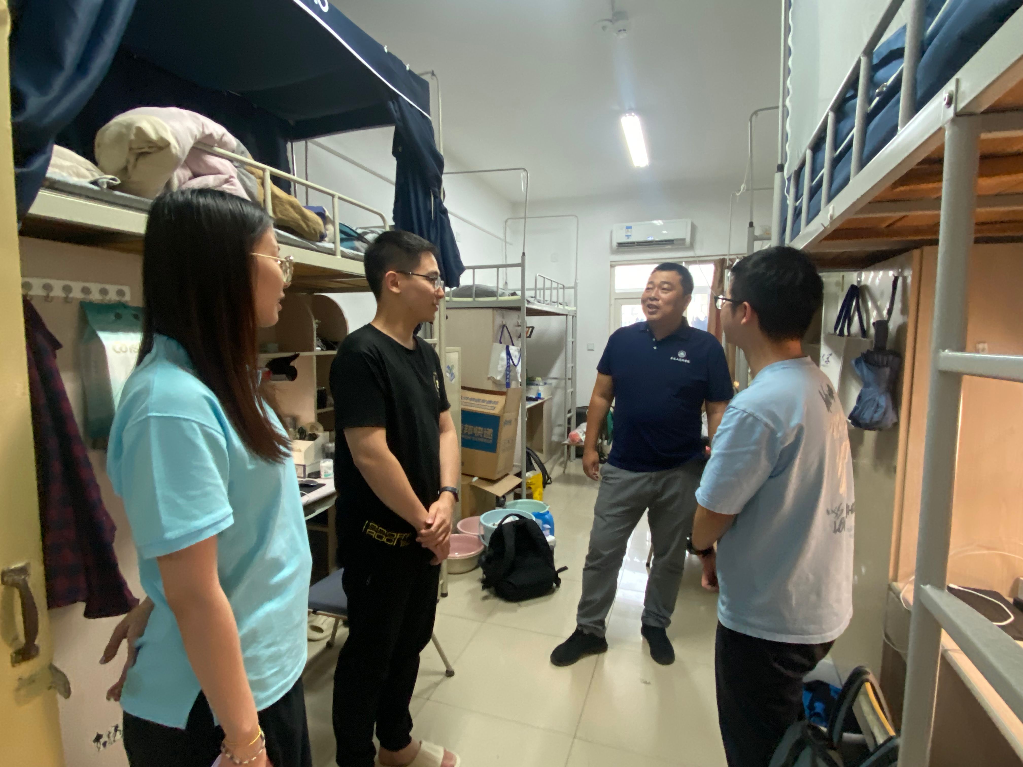 老师们来到员工宿舍,与留校员工亲切交谈,代表学院向大家致以节日的慰问,并为同学们送上了“爱心礼包”。在温馨热烈的氛围中,老师们详细询问了大家的学习生活状况和对未来科研的规划,耐心倾听同学们在新学期开学之初对学业、生活的种种困惑,并提供了针对性的建议与指导。交谈中,老师们教导同学们,要合理规划学习生活,认真学习专业知识,为将来入企实践打下坚实的基础。老师们鼓励同学们,要锚定真问题选择科研方向,致力于解决国家“卡脖子“难题,心怀“国之大者”,努力成为担当民族复兴大任的卓越工程师。老师们叮嘱同学们,中秋佳节是团圆的节日,要在学习科研之余给家人打个电话,平时也要与家人常联系。同学们对学院的关心慰问表示感谢,表示将合理规划自己的学习生活,以饱满的精神状态投入新的学习阶段,不辜负学院的期待。