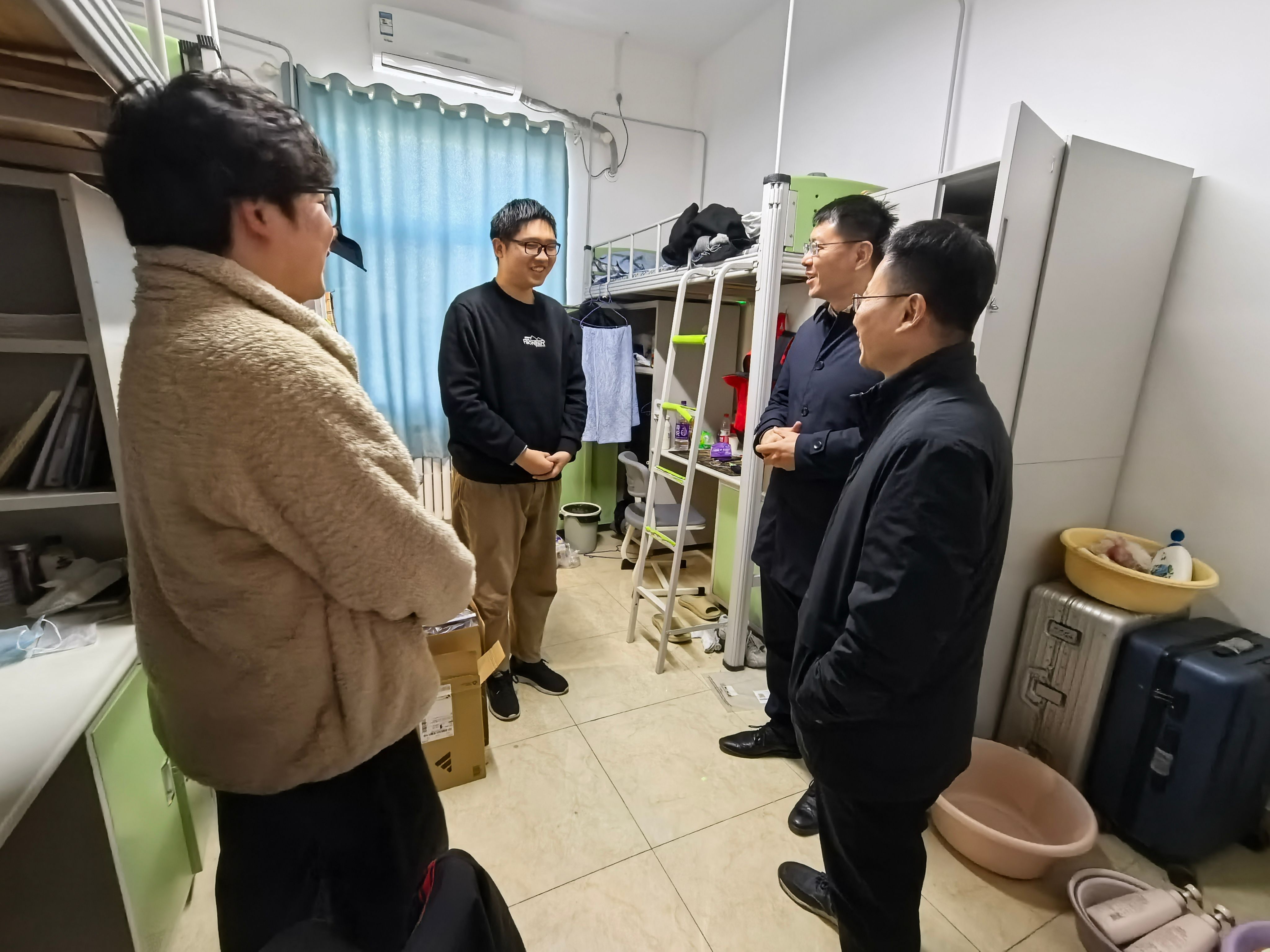 在软件园校区员工宿舍,郑彬一行详细解了员工科研和生活情况,鼓励同学们珍惜在校学习机会,利用寒假时间总结过去、充实现在、规划未来,不断提升自己的专业技能和综合素质,为将来深入企业发现和解决“真问题”打下坚实基础。在千佛山校区员工宿舍,姚鹏、张存生一行亲切询问员工的学习与生活需求,特别强调假期实验安全问题,叮嘱大家要与家人多汇报、常联系,希望大家能够以学科交叉研究开拓视野,用理论联系实际,坚持知行合一,在工程实践中学真知、悟真谛、强磨练、长本领,祝愿大家成为心怀“国之大者”担当民族复兴的卓越工程师。