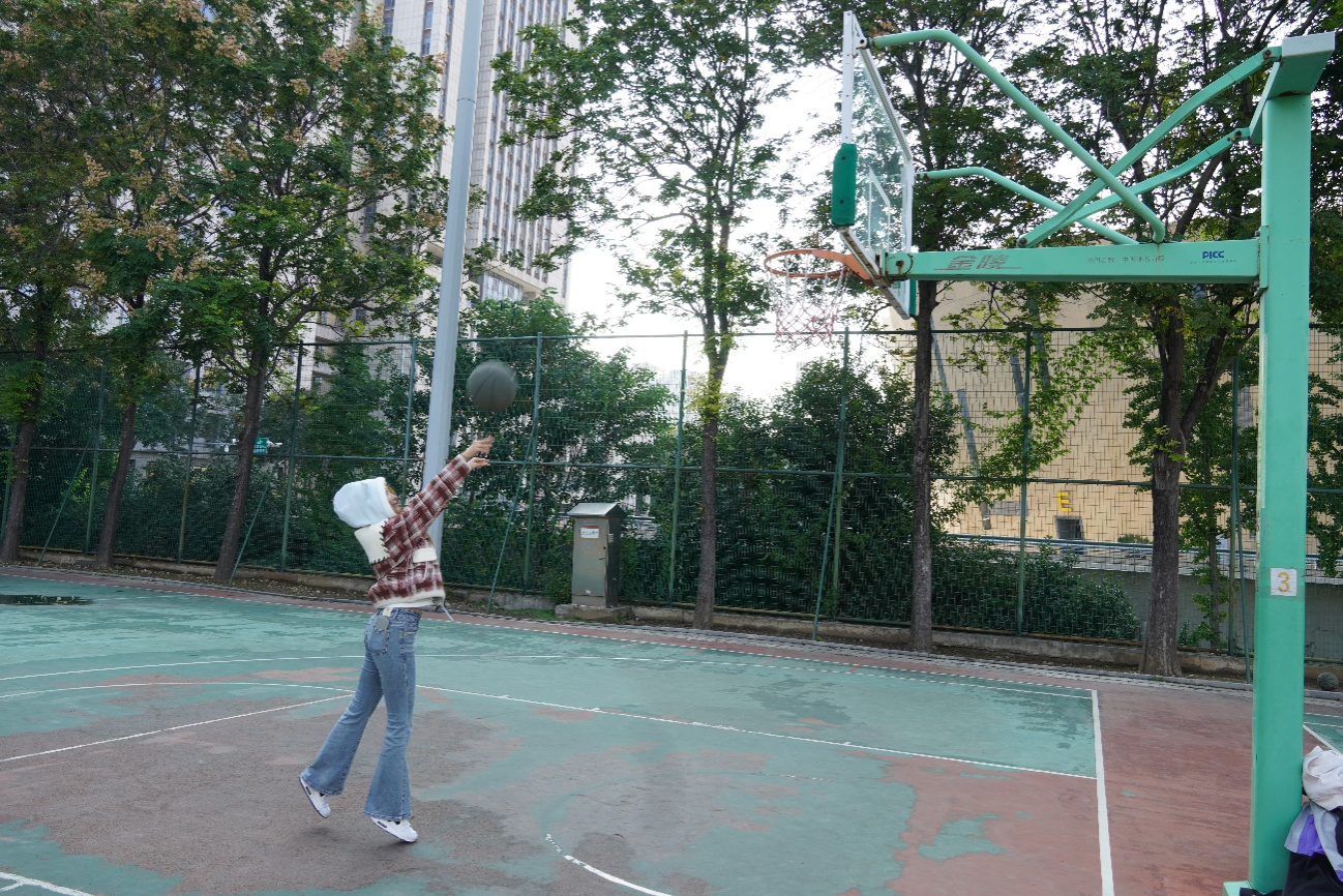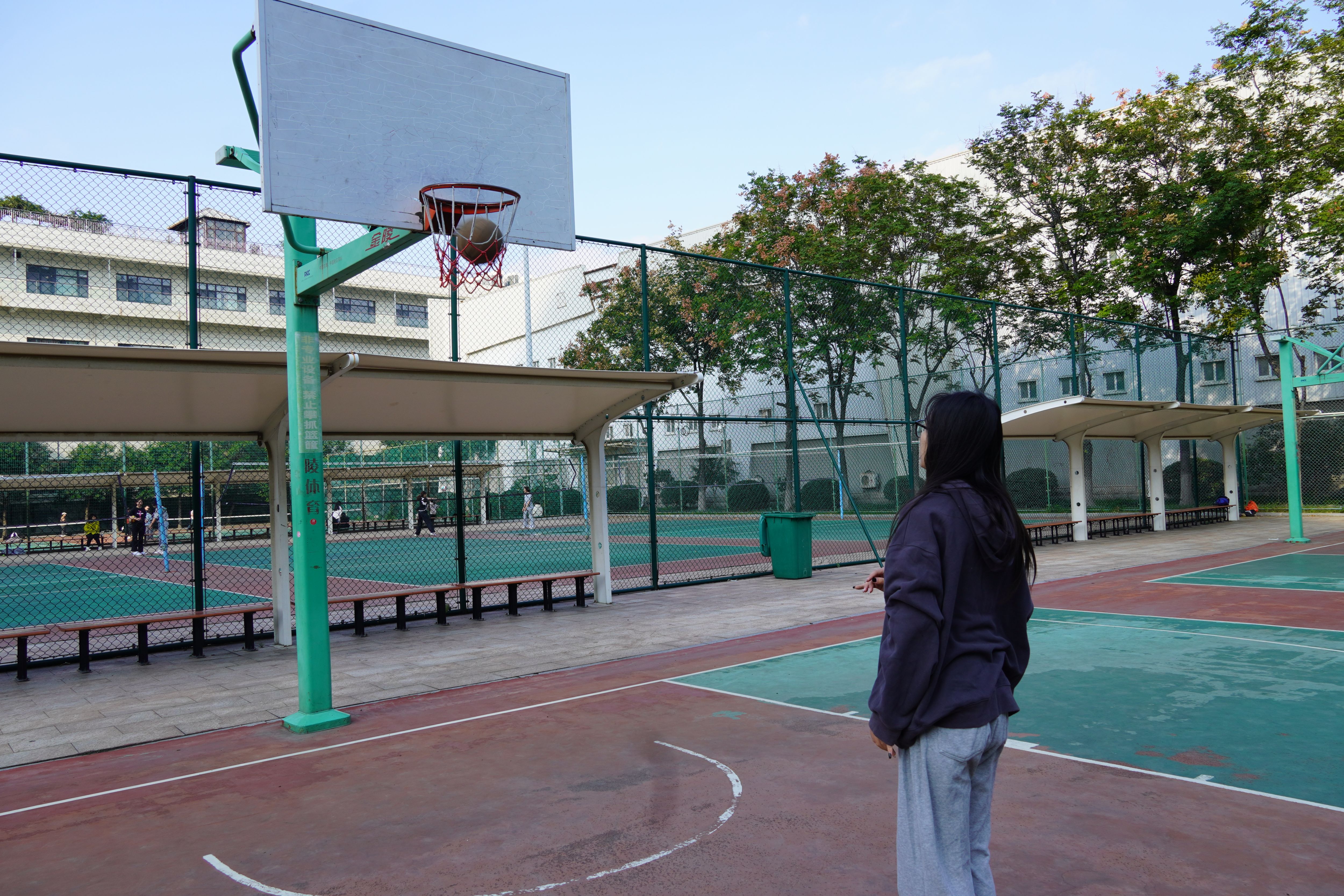 操场另一侧的女子趣味投篮赛也在轻松愉快的氛围中进行。参赛女生们展现出沉着冷静的姿态与出色的投篮技巧,欢笑声此起彼伏。经过激烈角逐,比赛决出了一二三名。