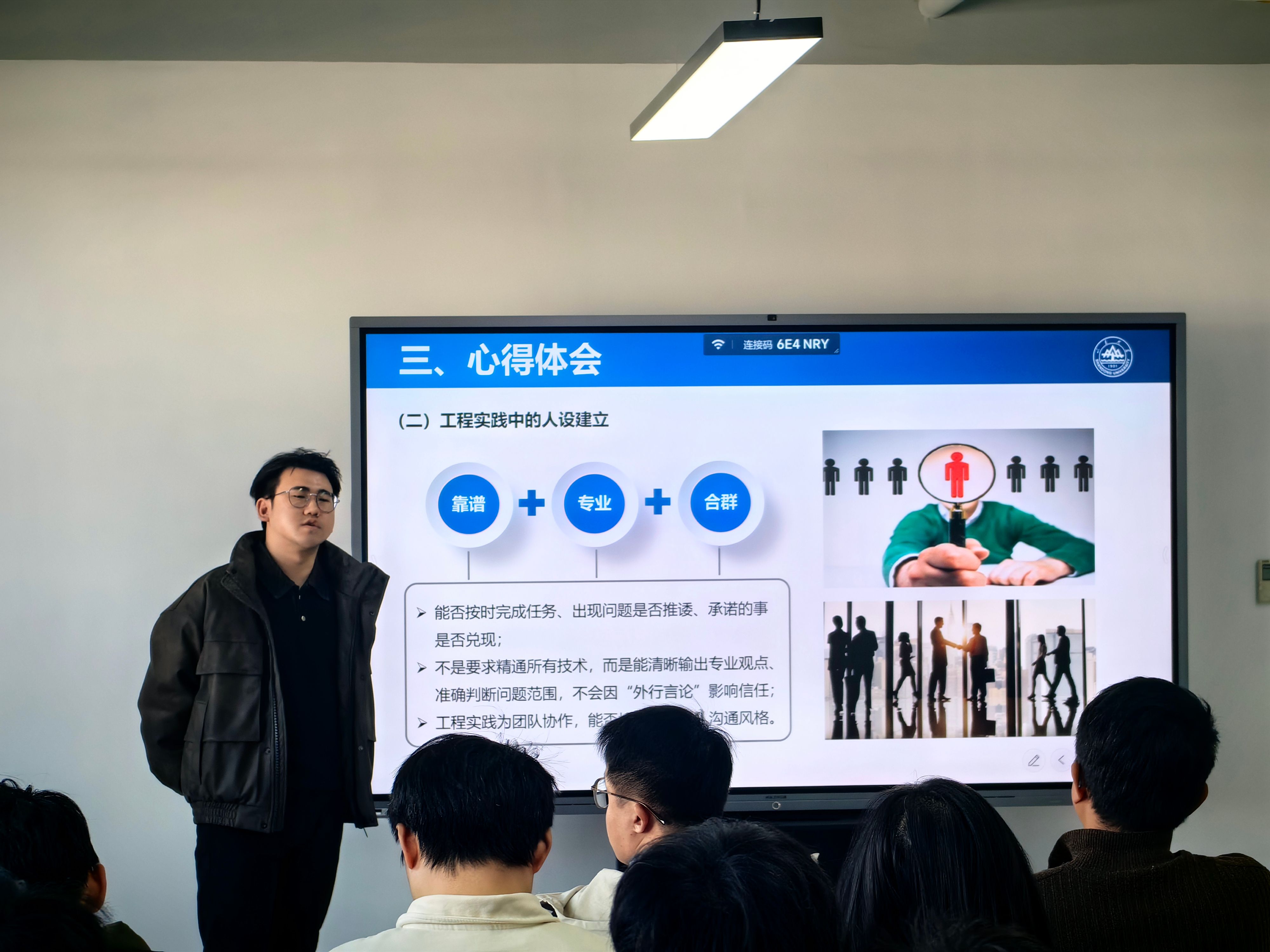 王申以“深海问道求真技,书山砺志攀高峰”为题,分享了自己对做好工程实践工作的感悟。他立足水下航行器减阻降噪与防护等核心项目,讲述了自己参与科研攻关与工程任务的宝贵经历,从设备调试的细节把控、实际工况的精准研判、时间管理的高效统筹到现场设计的实时调整,全方位拆解了工程实践过程。此外,他以高校与企业协同创新模式为切入点,为2025级同学送上干货满满的实战指南,并勉励大家,要做“靠谱”“专业”“合群”的人,以实践为笔,绘就国家英国上市公司365学子的奋进篇章。