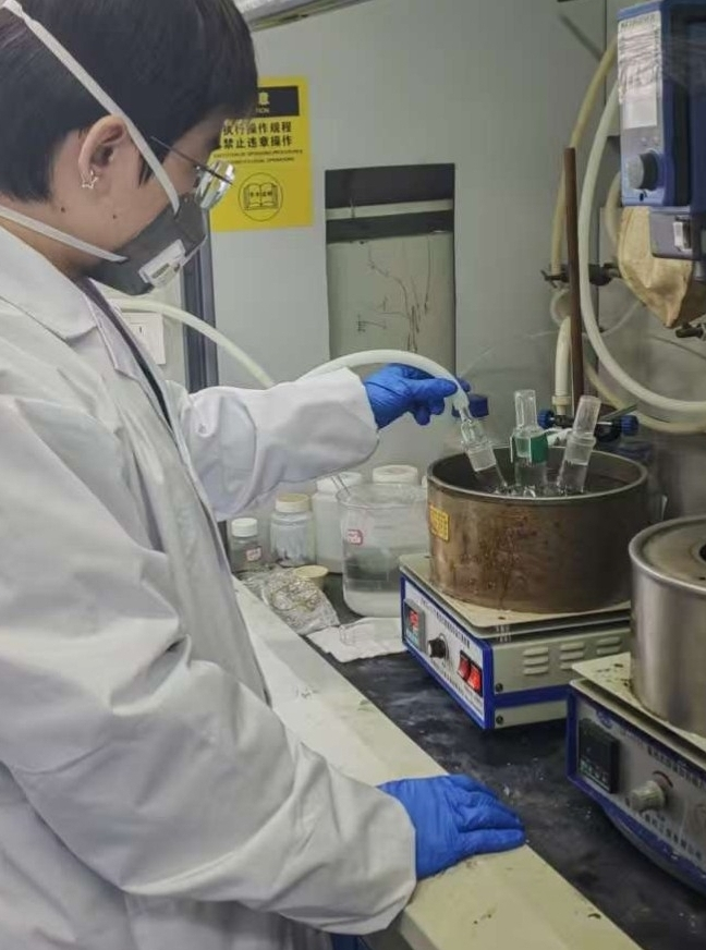 我在有机硅实验室承担“含氟聚芳基醚聚合物的性能研究”课题项目研发任务。项目面向5G/6G时代高频透波材料的国防战略需求,基于有机硅材料高耐候性等特性,精准调控特殊官能团比例,引入不同官能度基团构建树脂体系,系统性采集性能测试数据并进行迭代优化。目前研究工作正稳步推进,致力突破高频透波材料耐温瓶颈,为国防装备性能升级与国家安全保障提供核心材料支撑。